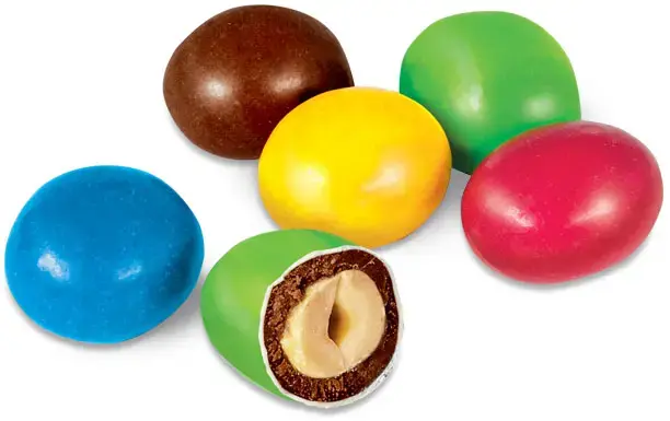 Арахис в молочно-шоколадной глазури и цветной сахарной оболочке.