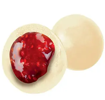 Белая глазурь: сахар, пальм./ши масла, лецитины, сух. молоко, масло какао, Е476; сушёная клубника (сахар, лимонн. к-та, пиросульфит Na); гуммиарабик, мальтодекстрин, шеллак. Аллергены: молоко, соя, сульфиты; возможны следы орехов, арахиса, глютена.