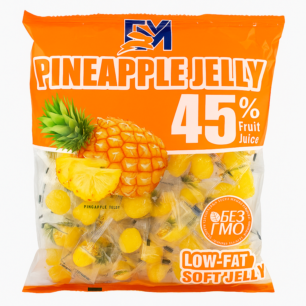 Желейные конфеты со вкусом ананаса — это яркое и ароматное лакомство с насыщенным тропическим вкусом. Мягкая текстура и сочный аромат делают конфеты любимыми как у детей, так и у взрослых. Приятная сладость и лёгкая кислинка создают ощущение свежести и лета в каждом кусочке.