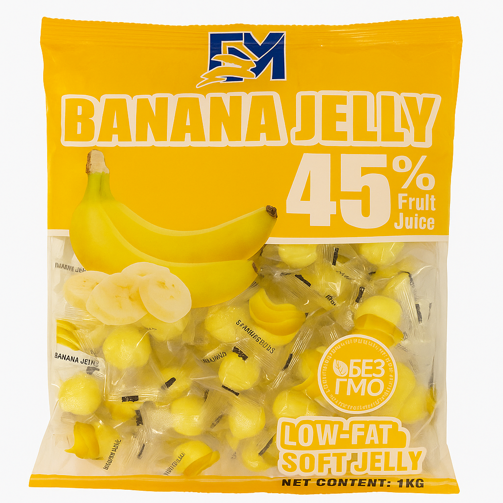 Желейные конфеты со вкусом банана — это нежное и ароматное лакомство с мягкой текстурой и ярким вкусом спелого банана. Конфеты обладают насыщенным ароматом и лёгкой сладостью, создавая ощущение натурального фруктового десерта. Отлично подходят для детей и взрослых, а также для праздничных угощений.