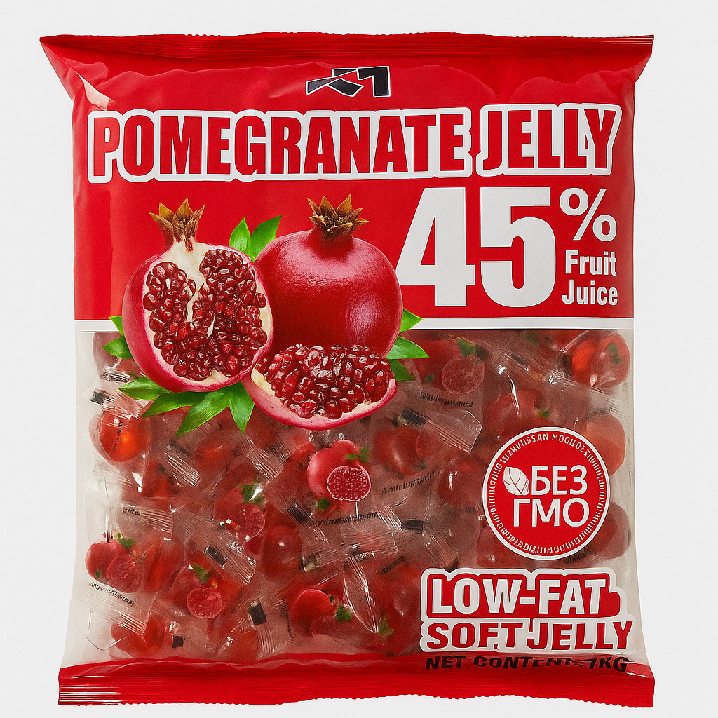 Желейные конфеты со вкусом граната — это сочное и ароматное лакомство с лёгкой кислинкой и насыщенным вкусом спелого граната. Мягкая желейная текстура и яркий рубиновый цвет делают эти конфеты не только вкусными, но и привлекательными на витрине. Отлично подходят для праздничных наборов и повседневного чаепития.